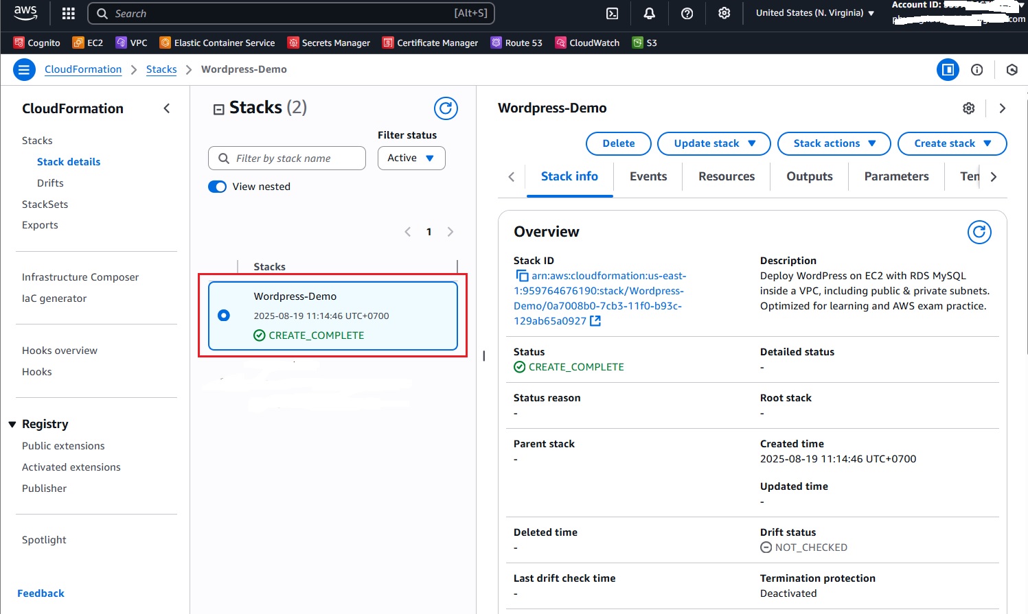 Qua hướng dẫn trên, bạn có thể thấy AWS CloudFormation thực sự biến việc triển khai một website WordPress trên AWS trở nên nhanh chóng và dễ dàng. Chỉ với một template và một lần nhấn “Create Stack”, toàn bộ hạ tầng từ máy chủ #EC2, cơ sở dữ liệu RDS, cho đến VPC, subnet, bảo mật… đã được thiết lập tự động và chính xác. Điều này không chỉ hữu ích cho mục đích thử nghiệm, học tập mà còn áp dụng được trong môi trường thực tế. Với CloudFormation, các nhóm phát triển và vận hành có thể triển khai hạ tầng phức tạp chỉ trong vài phút, đảm bảo tính nhất quán và tin cậy giữa các môi trường (dev/staging/prod).