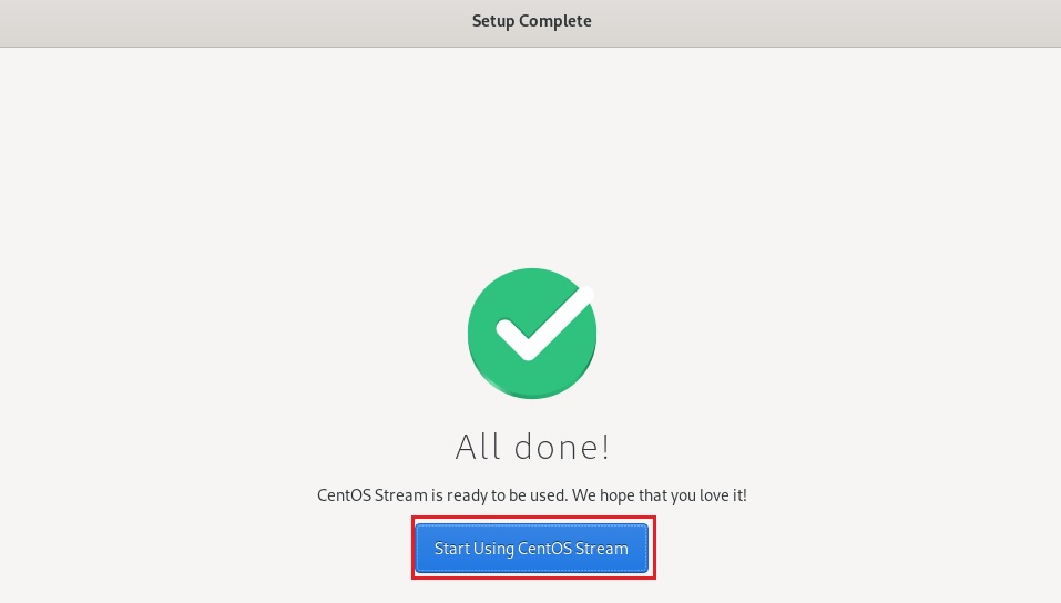 - Click vào Start Using CentOS Stream để kết thúc, và đăng nhập vào Linux Centos 9