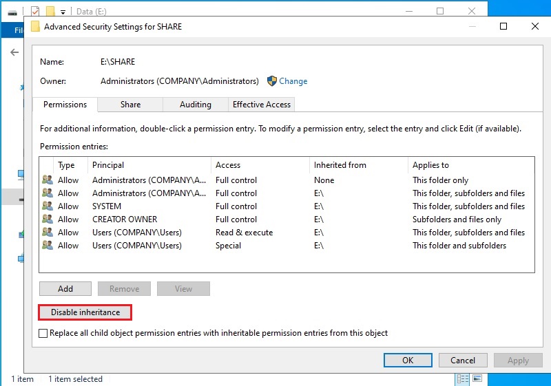 - 11 11. Click Covert inherited permissions into explicit permissions on this object.