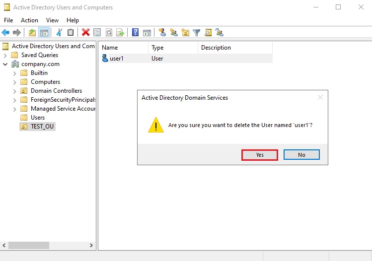 Trong hướng dẫn này, chúng ta sẽ xóa một active directory user tên là user1.