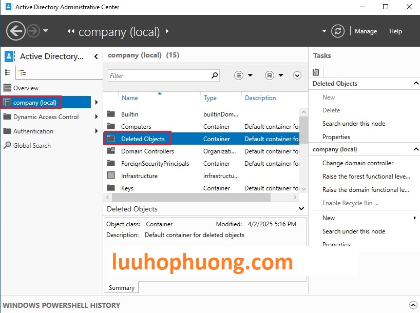 - Khôi phục (Restore) một Object với Active Directory Administrative Center (ADUC)