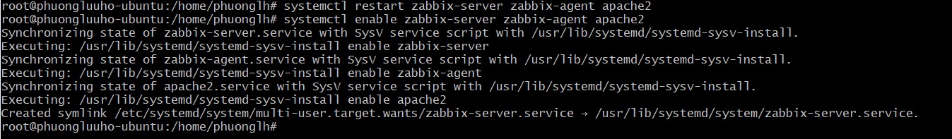 – Bây giờ, bạn có thể khởi động và thiết lập các dịch vụ Zabbix tự động chạy khi khởi động hệ thống Linux Ubuntu: