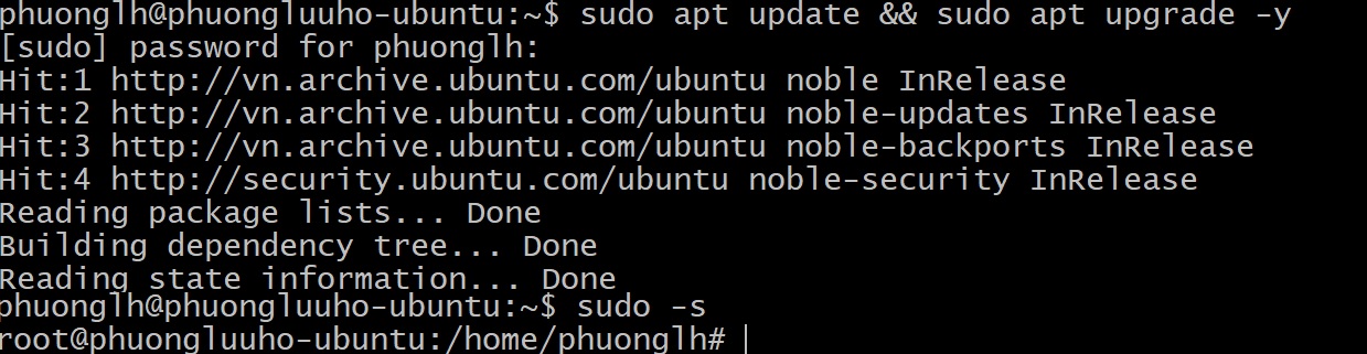 1. Cập nhật hệ thống Ubuntu Linux và vào quyền root