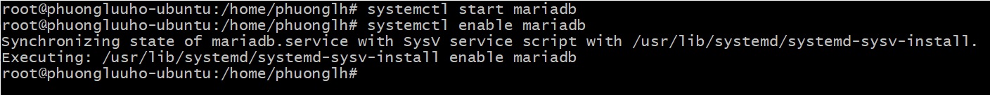 – Sau khi cài đặt, khởi động và kích hoạt dịch vụ MariaDB: