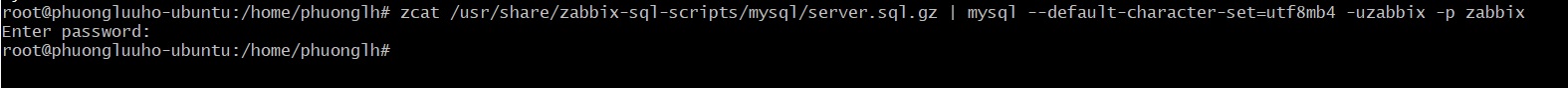 – Zabbix đi kèm với một tập dữ liệu mẫu để khởi tạo database. Bạn cần nhập dữ liệu này vào database vừa tạo: