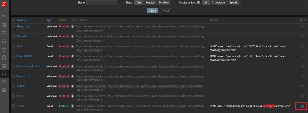 Để đảm bảo cấu hình hoạt động, bạn có thể tạo một sự kiện thử nghiệm trong Zabbix. Nếu email được gửi thành công đến Gmail, cấu hình của bạn đã hoàn tất.