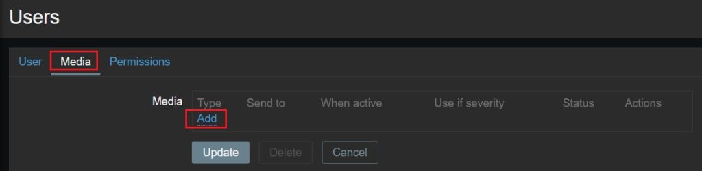 3. Trong tab “Media”, thêm Gmail làm phương thức gửi thông báo> click vào Add.