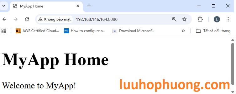 👉 Nếu thấy trang MyApp Home như vậy chúng ta test thành công.