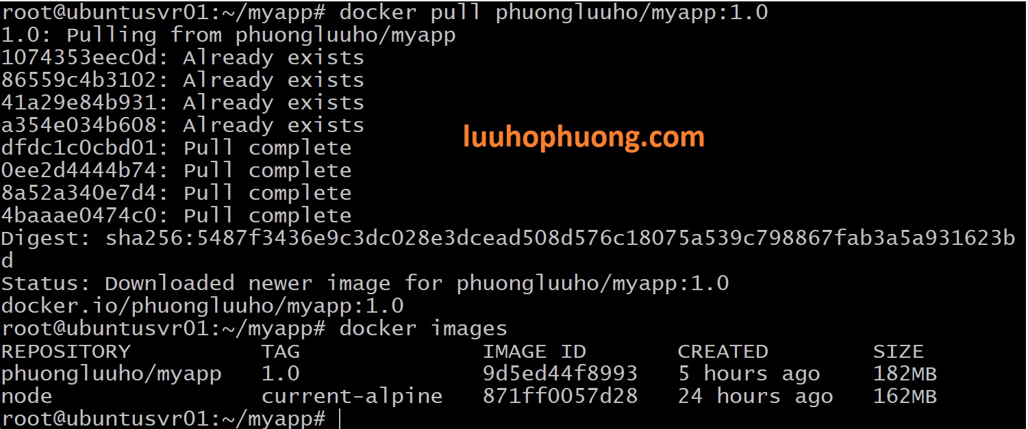Bước 4 – Pull image myapp từ Docker Hub về Server