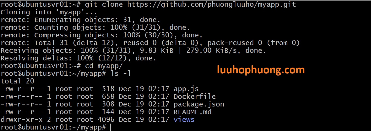 Bạn hãy sử dụng lệnh git để lấy (clone) repo https://github.com/phuongluuho/myapp.git về máy tính của bạn rất đơn giản 👇