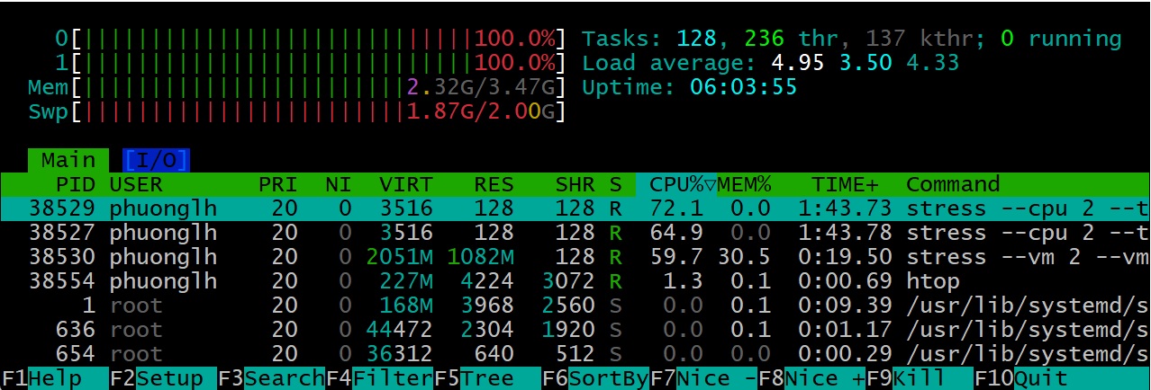 htop– Phiên bản nâng cấp của top, giao diện thân thiện hơn, cho phép điều hướng và lọc tiến trình dễ dàng. -