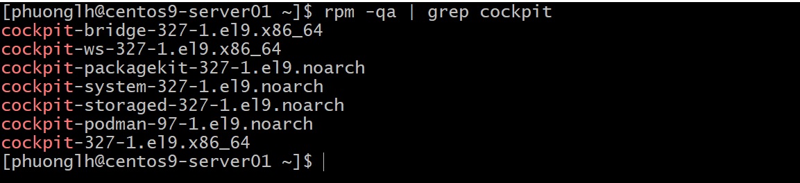Trên RHEL 9, Cockpit thường có sẵn trong repository chính. Trước hết, kiểm tra xem nó đã được cài chưa: