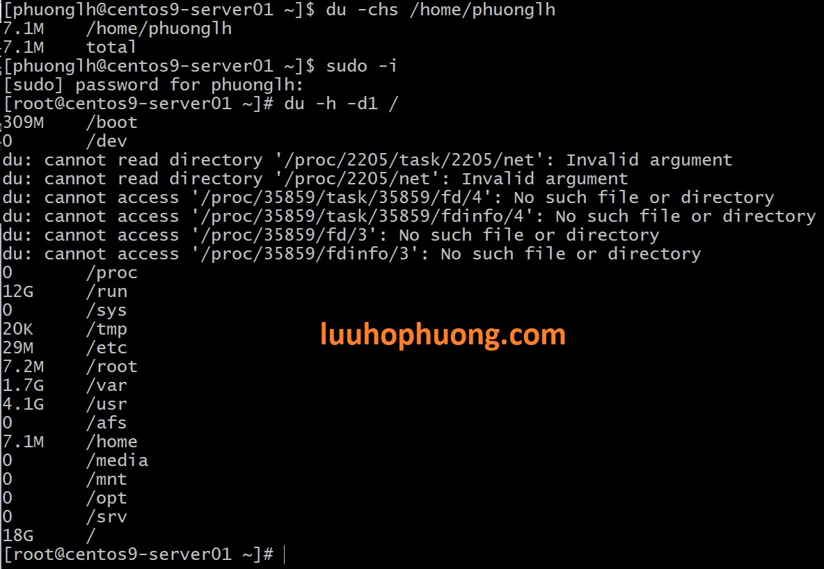 du– Kiểm tra dung lượng thư mục hoặc files, giúp tìm ra thư mục nào “ngốn” nhiều dung lượng. -