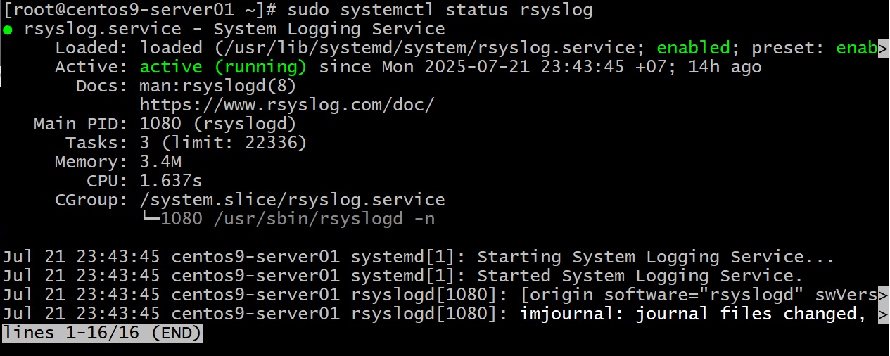 systemctl status rsyslogđể chắcrsyslogvẫn chạy (nếu máy cực kỳ lag, đôi khi syslog có thể tụt lại, nhưng hiếm khi chết). -