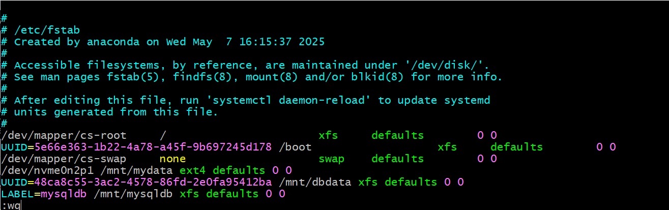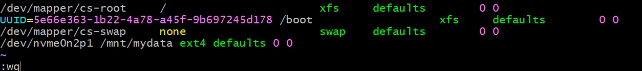 /dev/nvme0n2p1 /mnt/mydata ext4 defaults 0 0