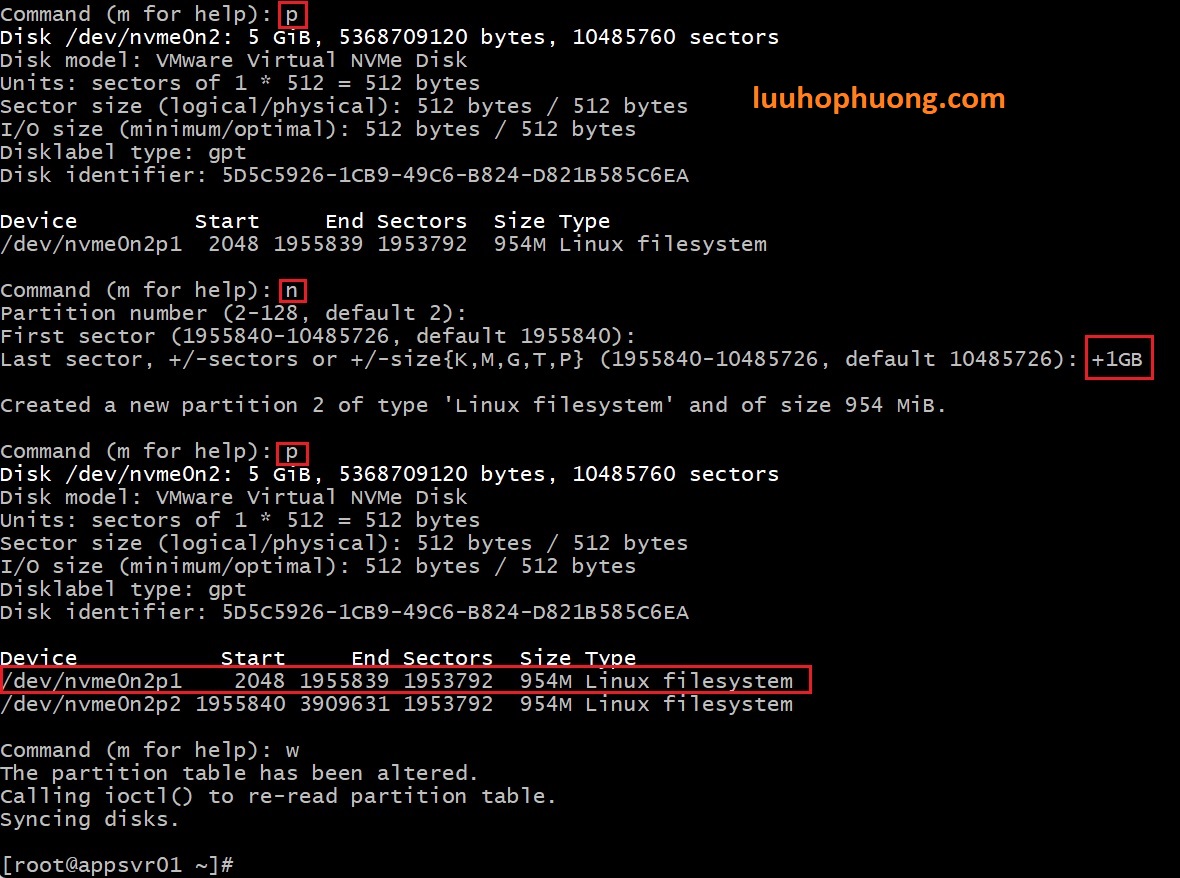 2. Tạo phân vùng mới cho nvme0n2: