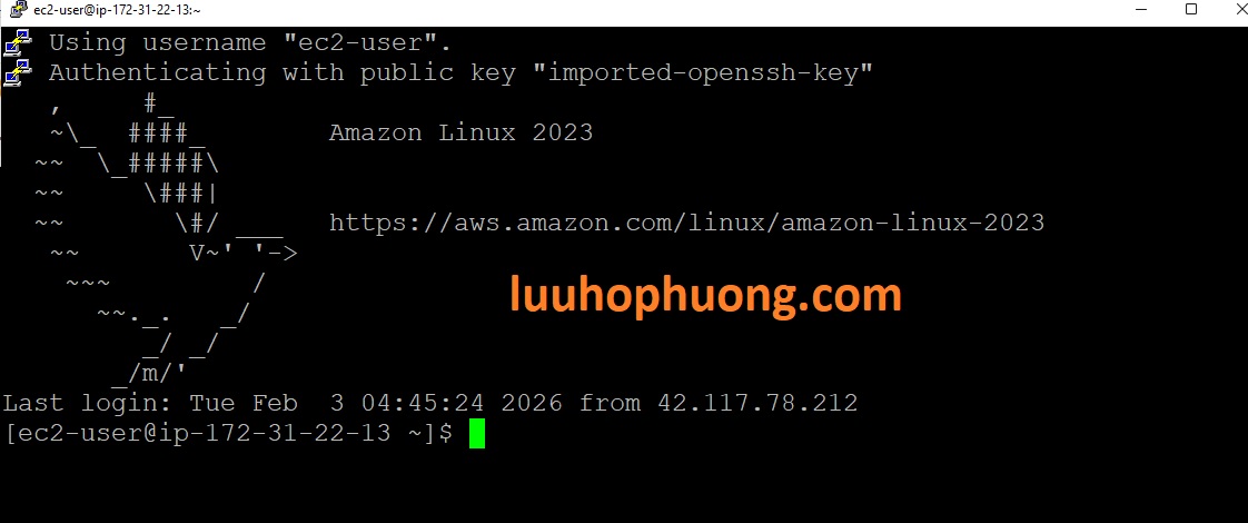 Và bây giờ bạn đã có thể login được và làm việc với EC2 Linux Instance của bạn.