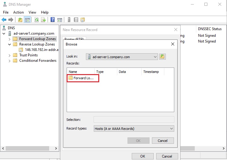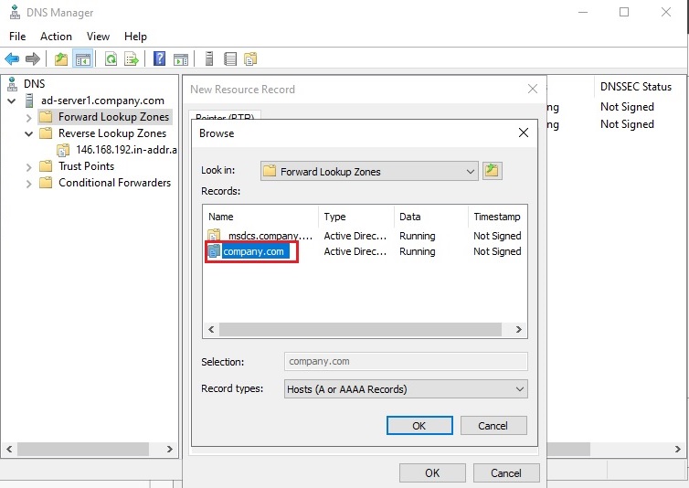 5. Chọn click vào Forward Lookup Zone Name (company.com).